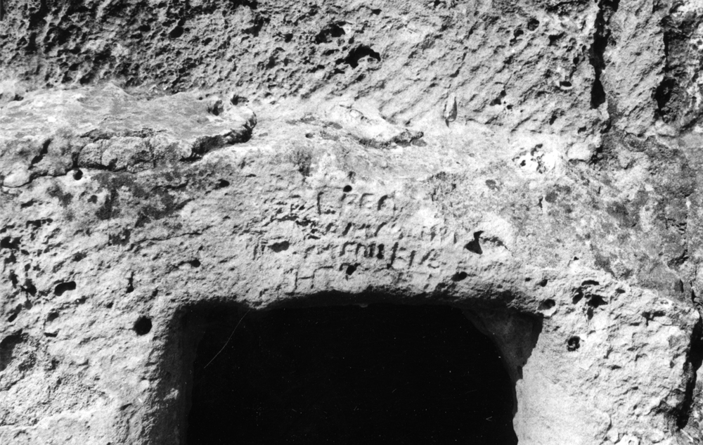 Text: Inscribed on the façade above the door in an undefined and badly damaged area.