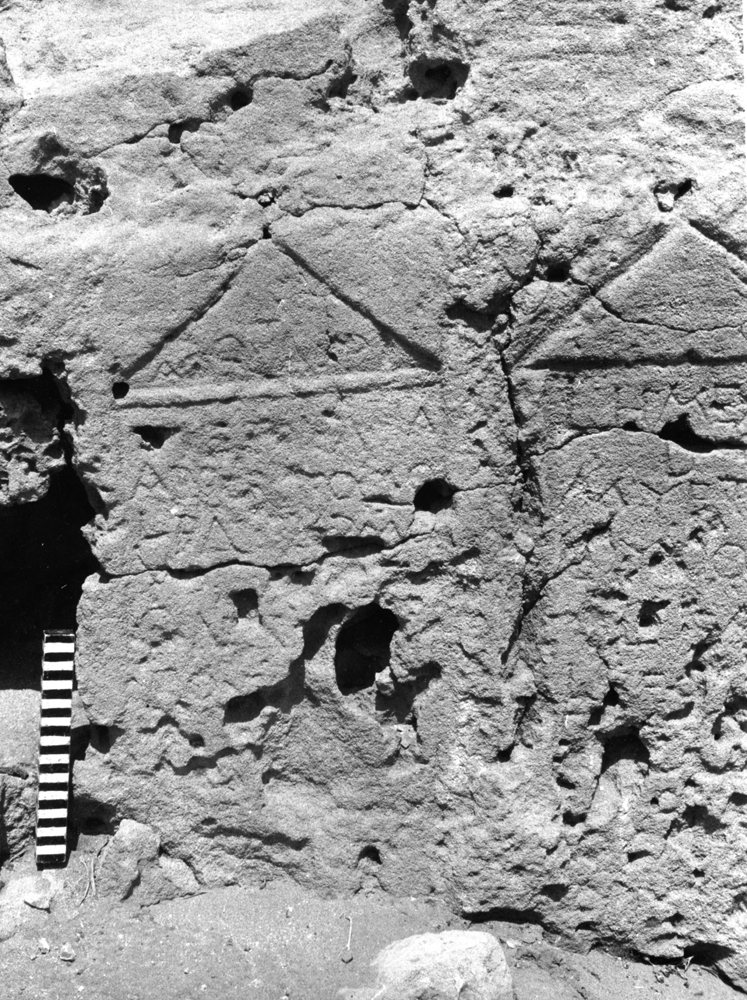 incised line, the panel by moulding, the surface damaged; to the right of T.398, to the left of T.395