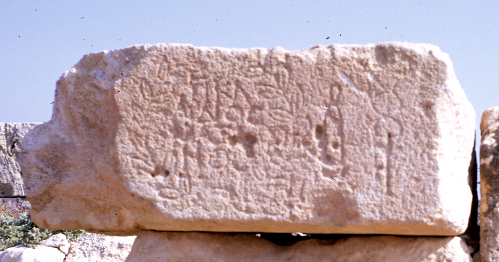 Text: Incised within a wreath.