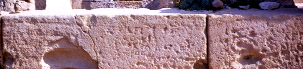 formal inscriptions have been cut at irregular intervals along both courses, most of them within wreaths of varying patterns.